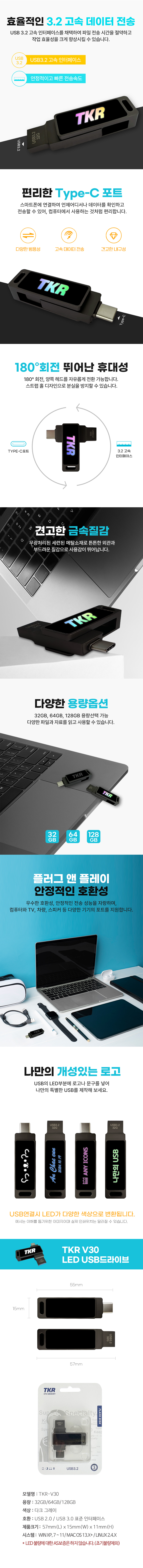 | USB3.2 Type C µà¾óÀÎÅÍÆäÀ̽º LED USB 128GB TKR-V30